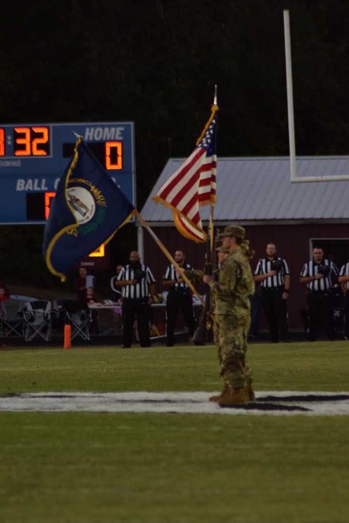 The junior ROTC presented colors before the Pulaski-South Laurel game.