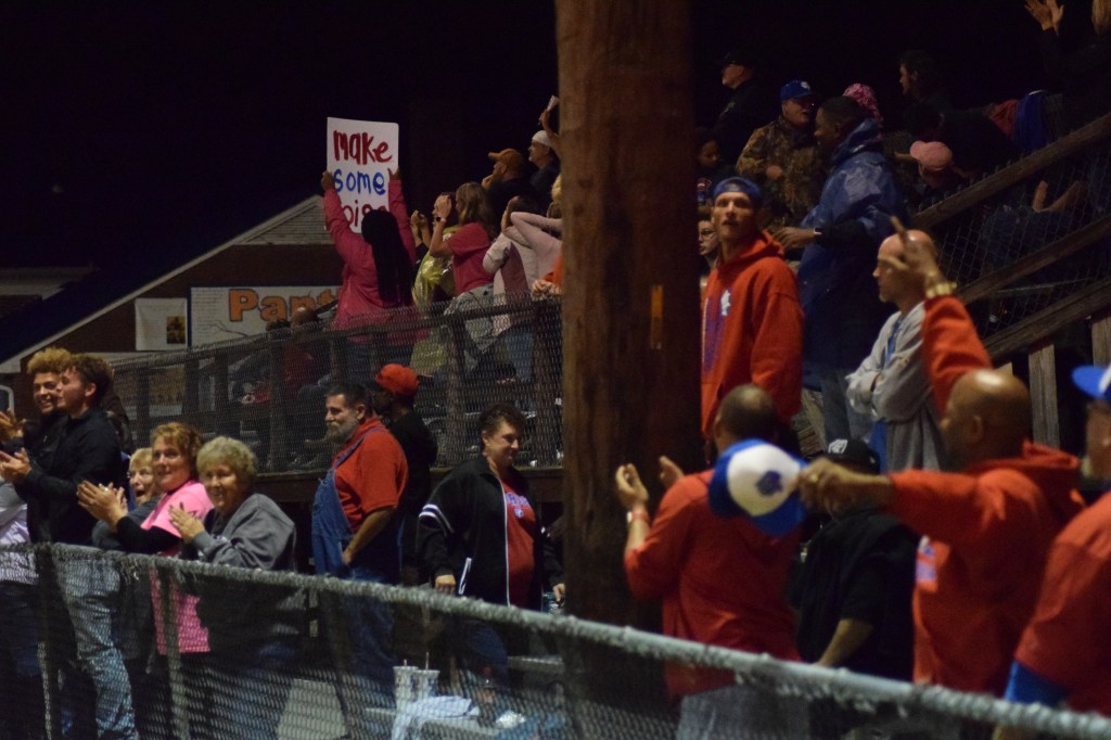Eminence fans erupt after another big play. Warrior fans filled the visitor bleachers and were standing all along the fence at Frankfort’s Sower Field.
