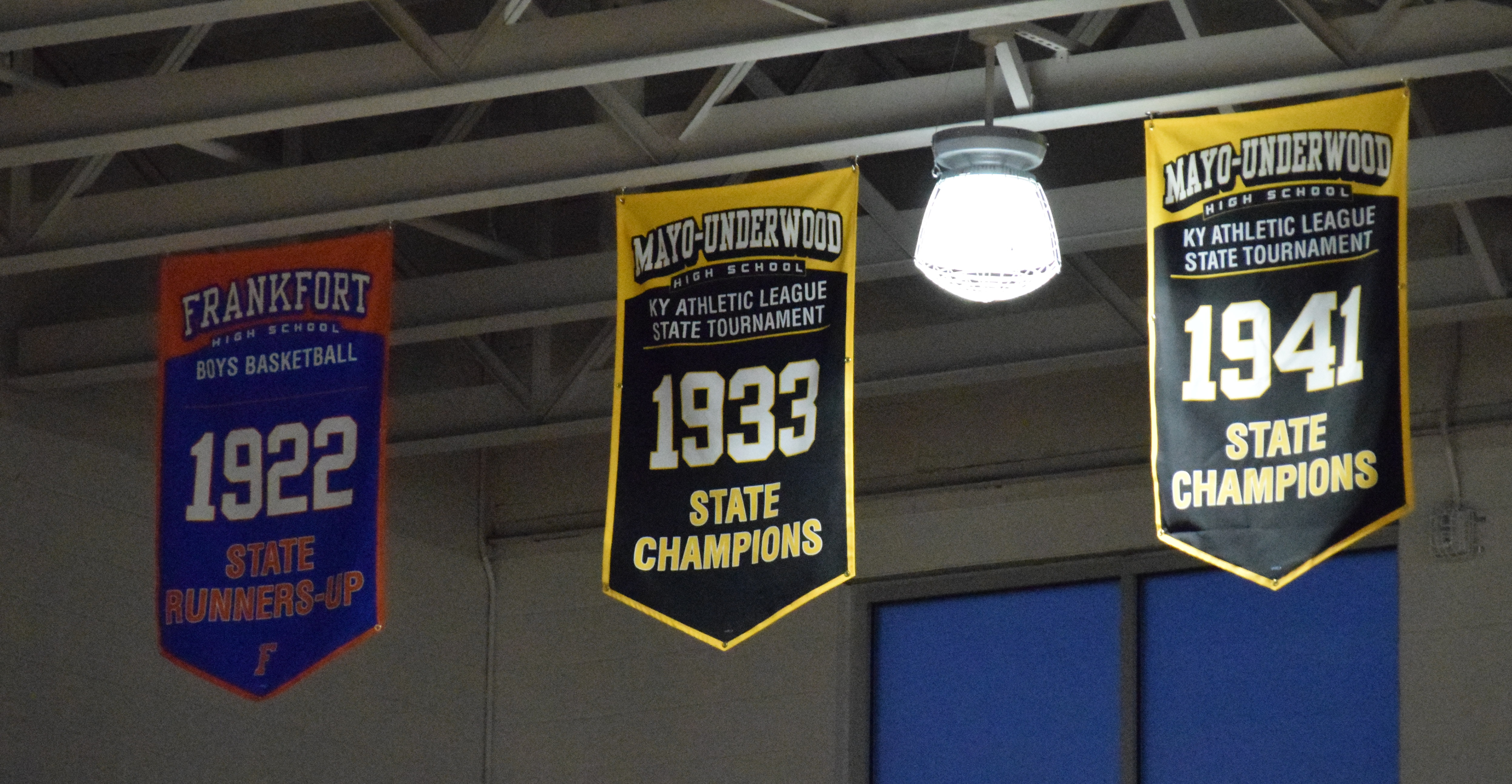 “A few years ago, when Chris O’Bryan became the boys’ (basketball) coach, he started doing some things to get the (Frankfort) alumni connected and it was decided to reach out to the Mayo-Underwood alumni. We have the banners and we have Mayo-Underwood throwback jerseys that we wear occasionally.”