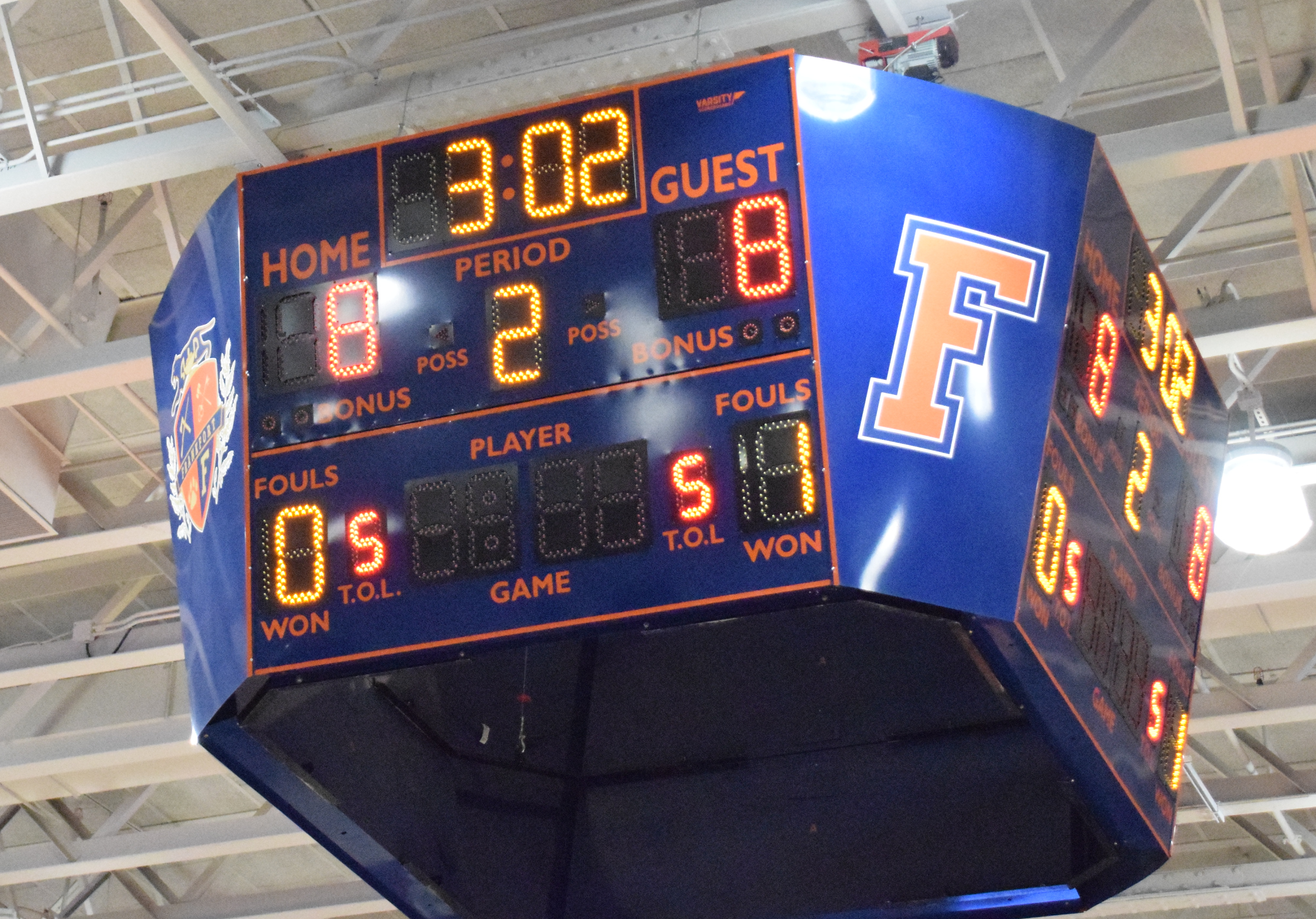 The renovation included new scoreboards on each end, just like things had been, but added a fan-friendly overhead scoreboard. “With the shot clocks, there are eight clocks in the arena,” Yocum noted.