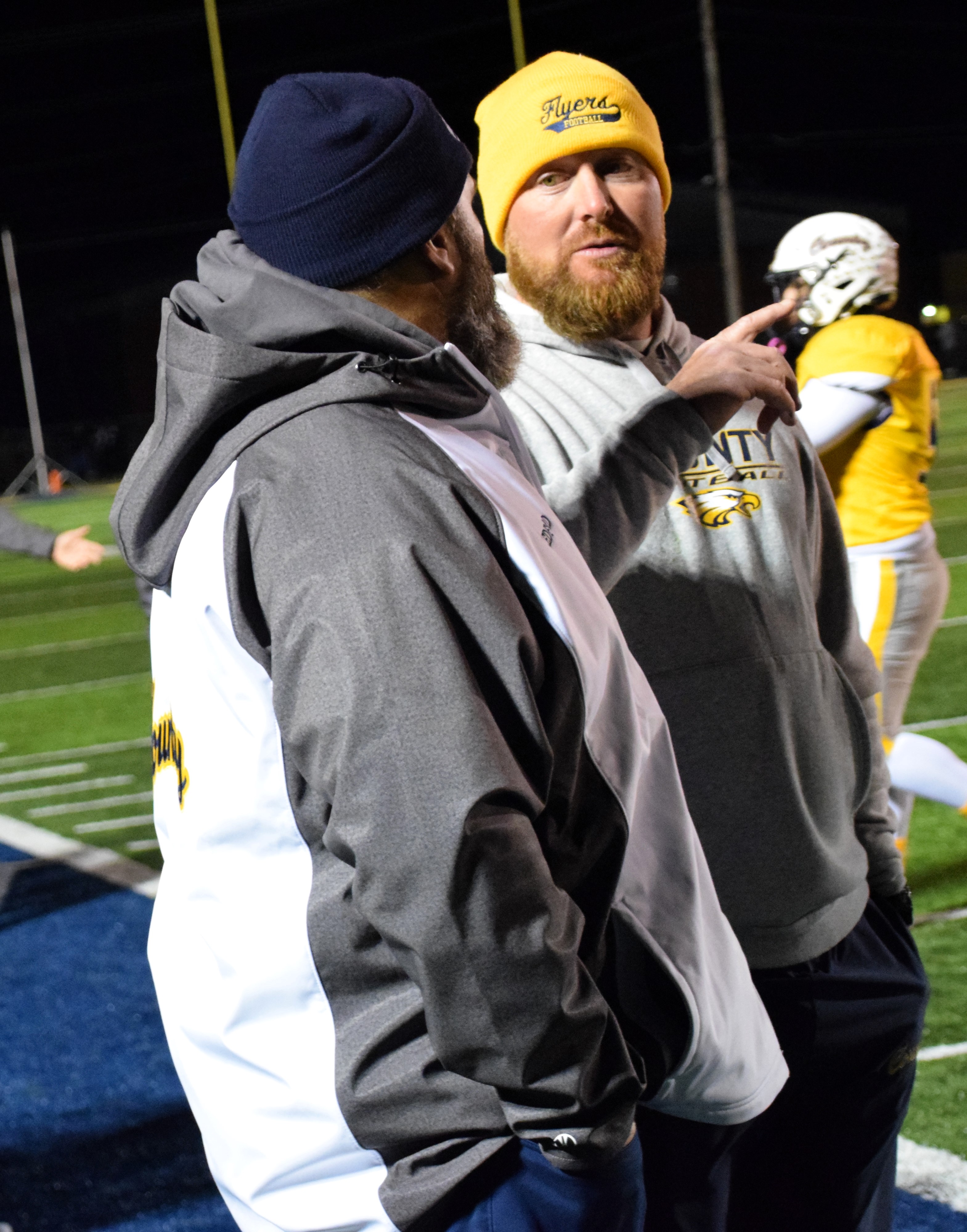 Moore is an assistant football coach for the Franklin County Flyers. Technically, he’s listed as support staff but regardless of his title, Moore is a coach.