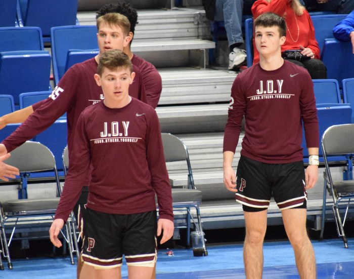 Members of the Pikeville Panthers basketball team go through warmups prior to Friday's quarterfinal game with George Rogers Clark in the UK Healthcare Boys' Sweet 16. The words emblazoned on their shirts remind them, and fans, of their priorities in life: Jesus, Others, Yourself. (Photo by John Herndon) Pikeville made an impression far beyond the … Continue reading Sharing j.o.y.