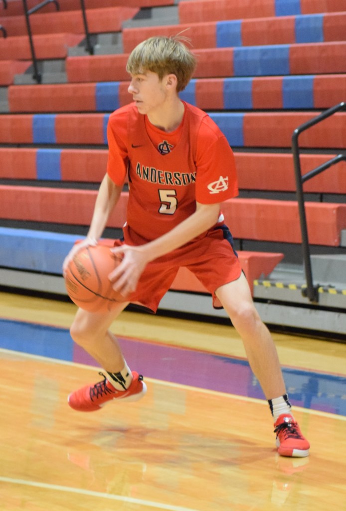 Anderson County’s Dylan Stephens starts a move from the wing against Frankfort.