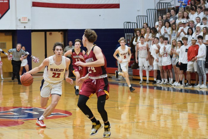 Frankfort’s Jordan Blythe gets a step on Anderson County’s Alex Carpenter in third quarter action.