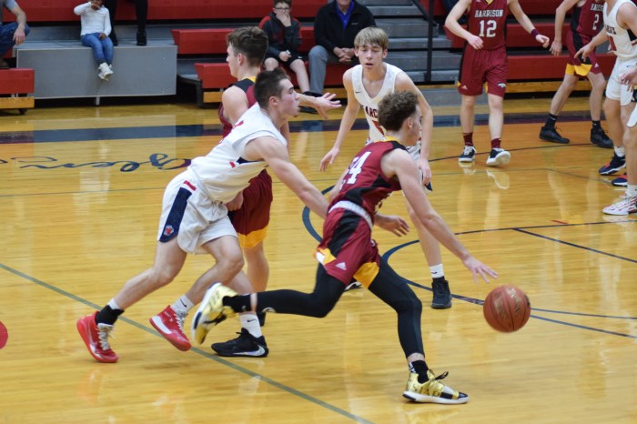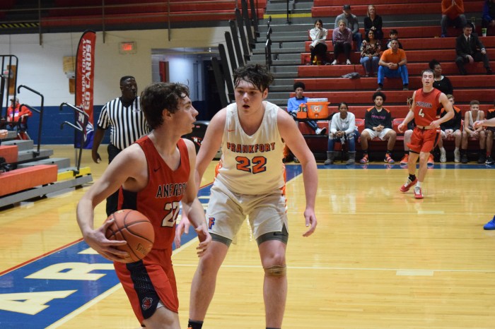 Frankfort’s Jackson Twombley defends as Anderson’s Zach Labhart looks to pass to a teammate.