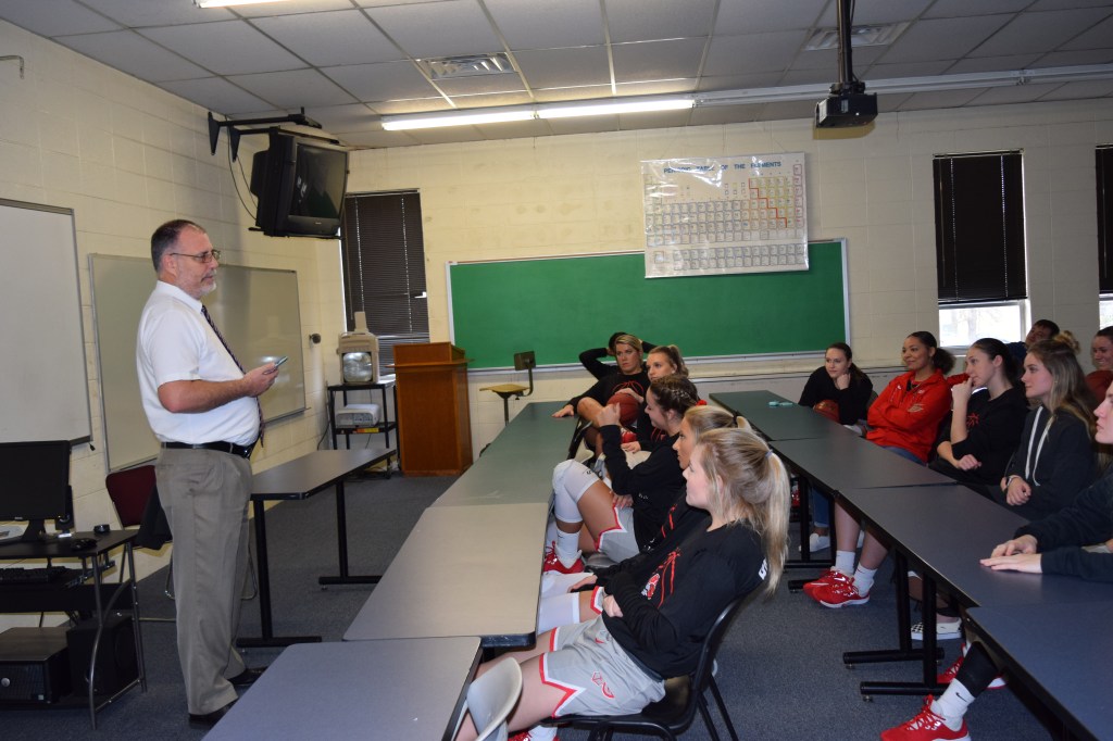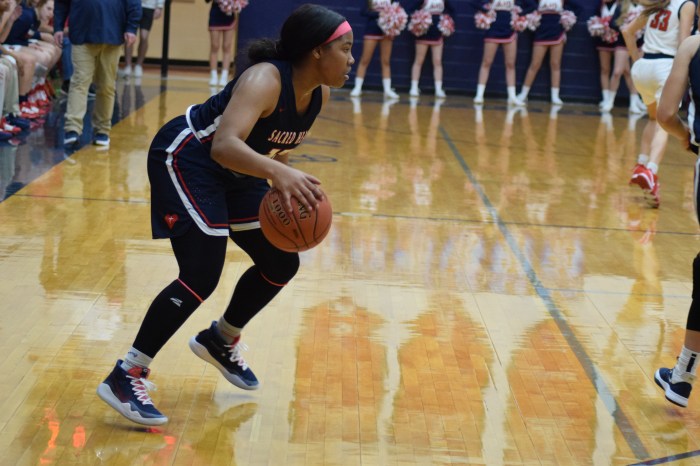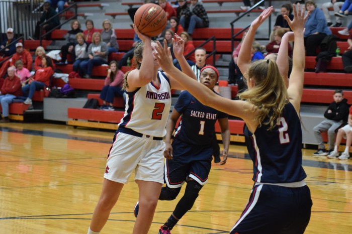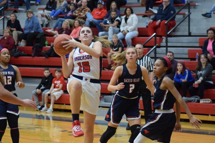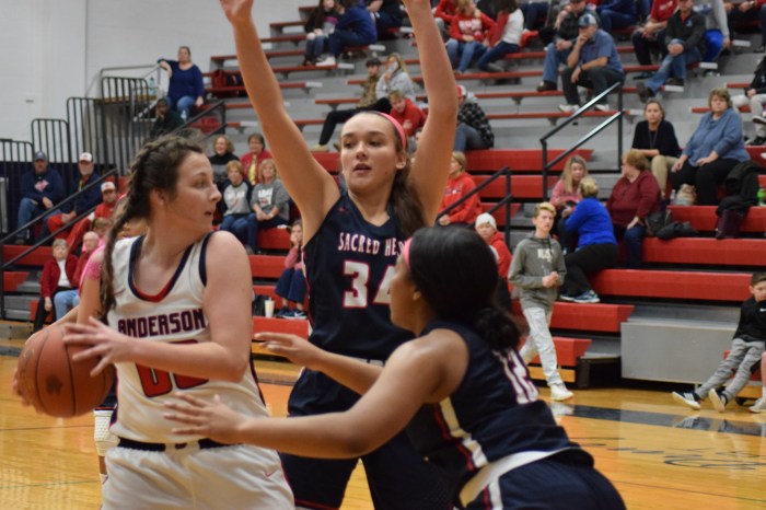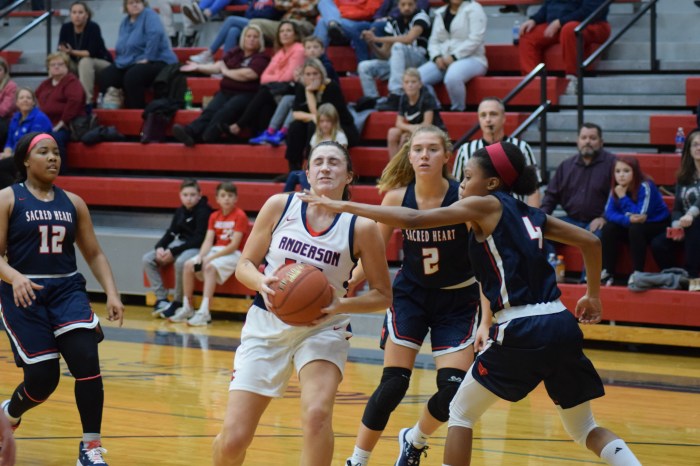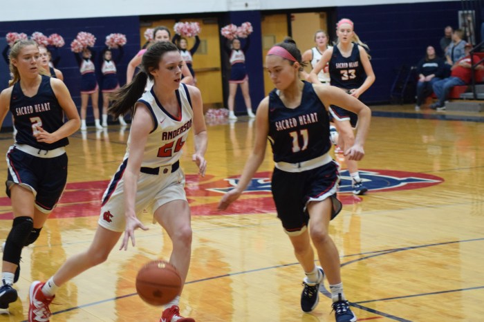 Girls’ basketball: Sacred Heart 60, Anderson County 50, Makenzie Cann and Eriel McKee jersey retirement ceremony. December 3, 2019